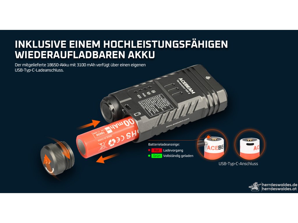1x AceBeam 18650 Akku 3300 mAh mit USB-C-Ladeport