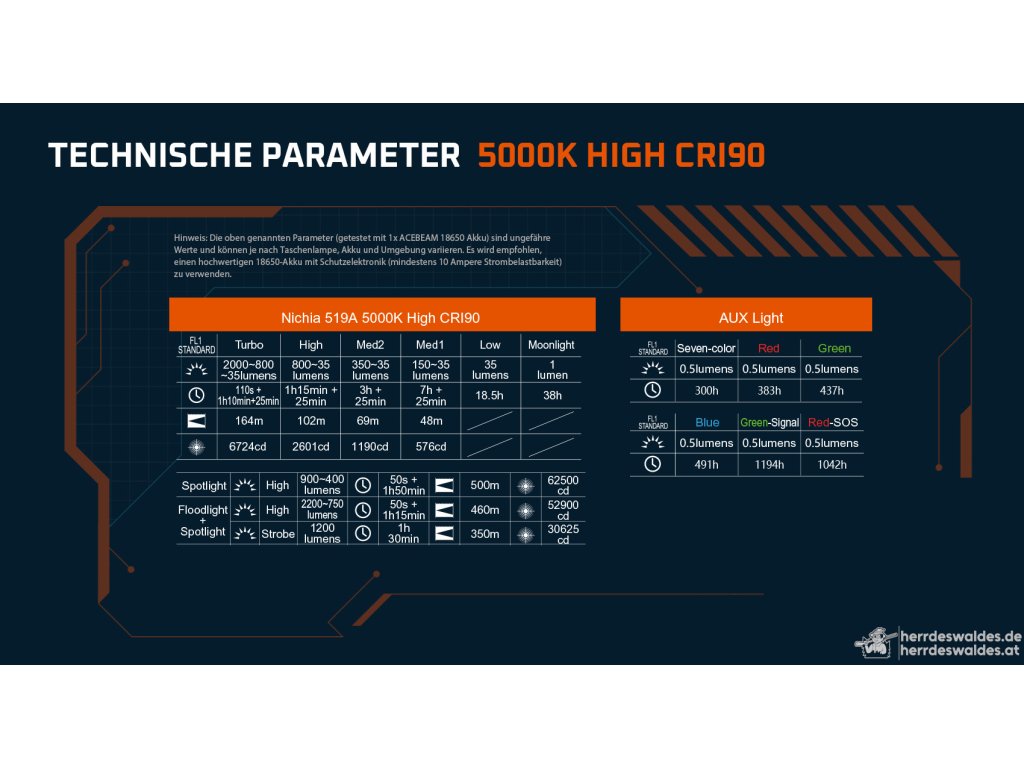AceBeam verwendet hochwertige Chips, hervorragende Verarbeitung und Eigenschaften – deshalb bietet der Hersteller auf die Lampen eine 5-Jahres-Garantie an.