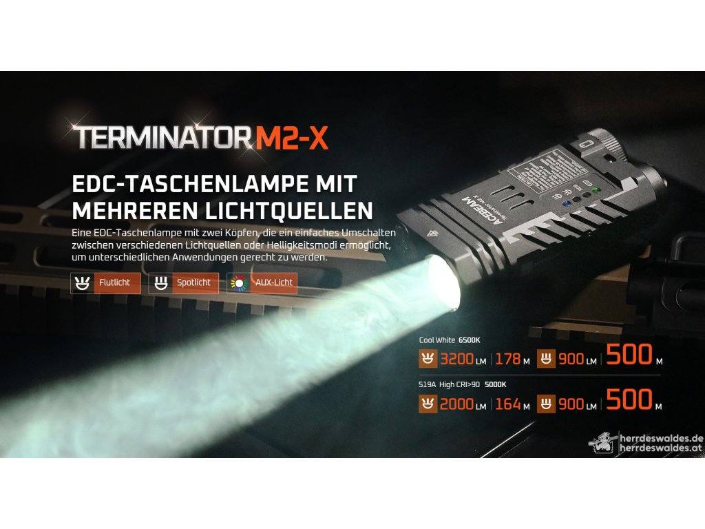 1x AceBeam Terminator M2-X, 2000 lm, CRI90, grey – LED-Dual-Taschenlampe mit Spot-Reflektor