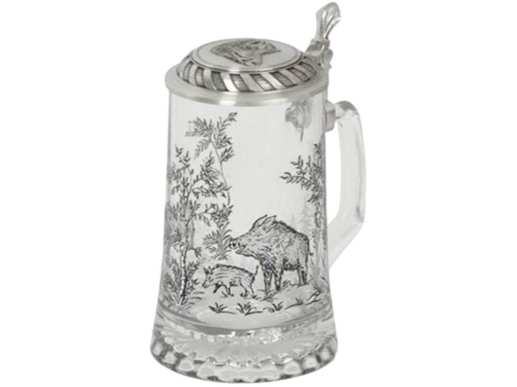 Artina Krug mit Deckel, 500 ml, Wildschweinmotiv, Glas und Zinn