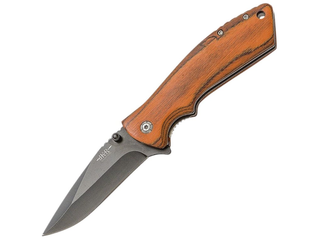 Die Importmarke JKR des spanischen Herstellers Joker stammt aus der traditionsreichen Messermetropole Albacete. Das JKR Klappmesser, 8,1 cm, Holz ist ein hervorragender Begleiter für den täglichen Gebrauch – insbesondere dank seines sehr geringen Gewichts und der ausreichend langen Schneide. Das Messer verfügt über eine innere Sicherung gegen unbeabsichtigtes Einklappen, Griffschalen aus imprägniertem Holz, einen Stahlclip und eine Öse am Griffende zum Durchziehen einer Schnur. Ein konstruktiv sehr schlichtes Messer, das durch seine hochwertige Verarbeitung überzeugt.