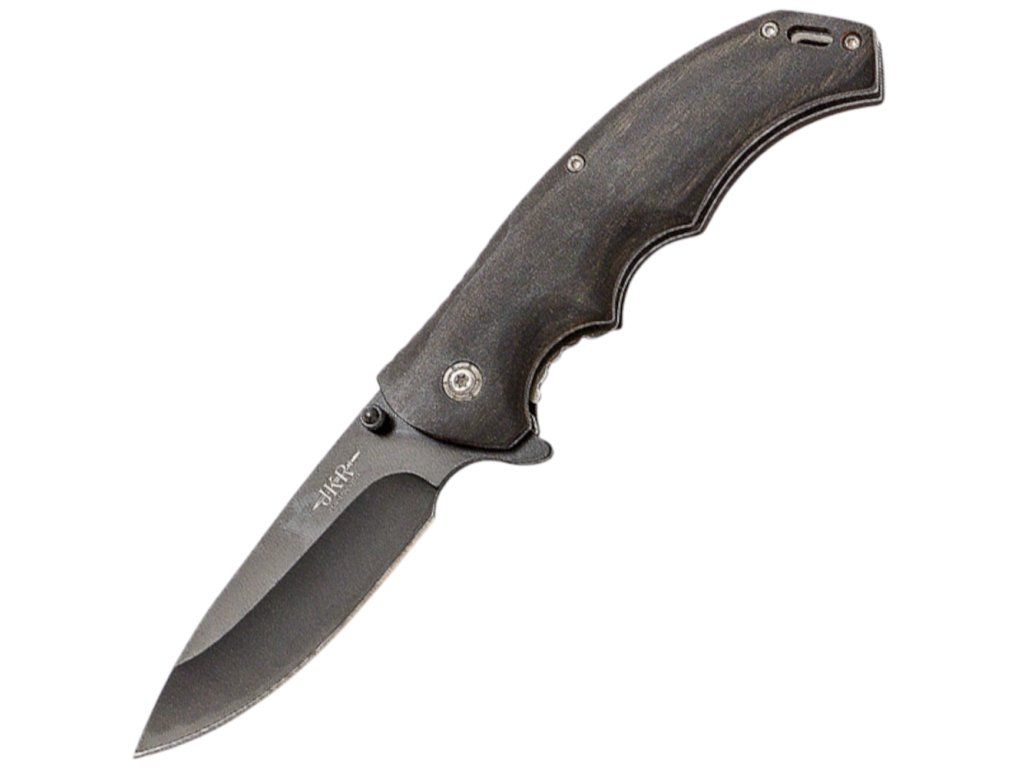 Importmarke JKR des spanischen Herstellers Joker aus der traditionellen Messerschmiede-Stadt Albacete. JKR Klappmesser, 8,2 cm, Schwarzes Holz ist ein hervorragender Begleiter für den täglichen Gebrauch, vor allem dank seines sehr geringen Gewichts und der ausreichend langen Klinge. Das Messer verfügt außerdem über eine innere Sicherung gegen unbeabsichtigtes Einklappen, Griffschalen aus schwarzem imprägniertem Holz, einen Stahlclip und Ösen am Ende des Messers zum Durchziehen einer Schnur. Die konstruktiv sehr einfache Bauweise überzeugt durch hochwertige Verarbeitung.