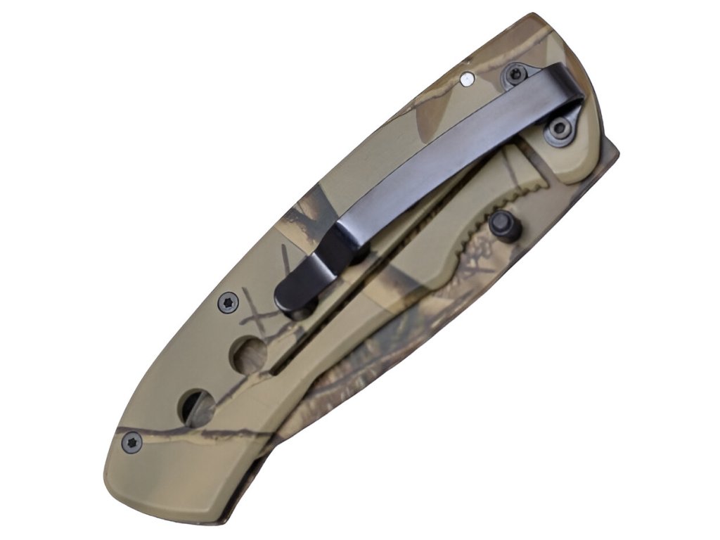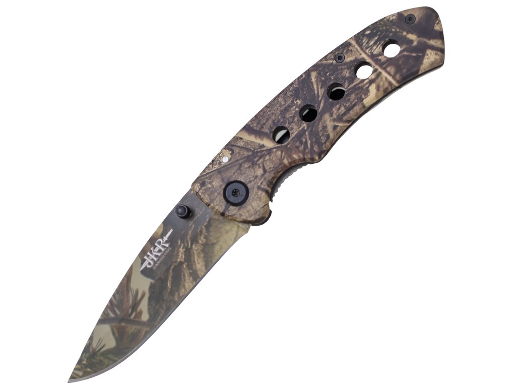 Importmarke JKR des spanischen Herstellers Joker aus der traditionellen Messerschmiedestadt Albacete. JKR Klappmesser, 8,5 cm, Waldtarnmuster, Aluminium, Grün ist ein idealer Begleiter für den täglichen Gebrauch – vor allem dank seines sehr geringen Gewichts und der ausreichend langen Klinge. Das Messer verfügt über eine innere Sicherung gegen unbeabsichtigtes Einklappen, einen Stahlclip und Griffschalen aus Aluminium mit praktischem Laub-Tarnmuster. Die sehr einfache Konstruktion überzeugt durch hochwertige Verarbeitung.