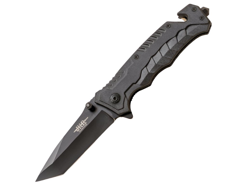 Importmarke JKR des spanischen Herstellers Joker aus der traditionellen Messerschmiedestadt Albacete. JKR Klappmesser, 8,8 cm, Tanto-Klinge, ABS, Schwarz ist ein hervorragender Begleiter für den täglichen Gebrauch, vor allem dank seines sehr geringen Gewichts und der ausreichend langen Klinge. Das Messer verfügt außerdem über eine innere Arretierung gegen unbeabsichtigtes Schließen, schwarze Griffschalen aus ABS sowie einen Glasbrecher und einen Gurtschneider am Griffende. Das Messer überzeugt durch seine hochwertige Verarbeitung.