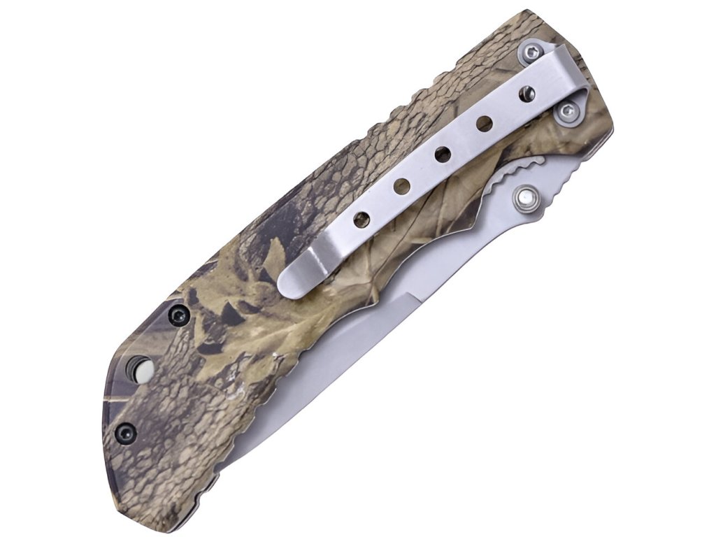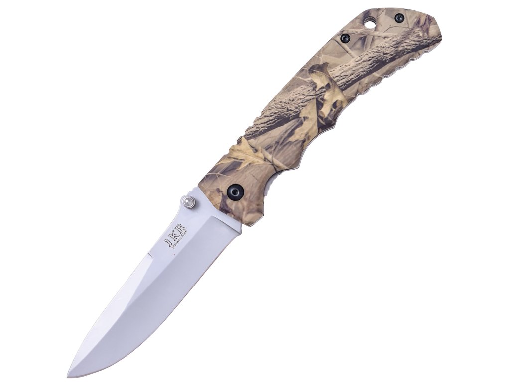 Importmarke JKR des spanischen Herstellers Joker aus der traditionellen Messerschmiedestadt Albacete. JKR Klappmesser, 9,1 cm, Waldtarnung, Aluminium, Grün ist ein idealer Begleiter für den täglichen Gebrauch – vor allem dank seines sehr geringen Gewichts und der ausreichend langen Klinge. Das Messer verfügt über eine innere Sicherung gegen unbeabsichtigtes Einklappen, einen Stahlclip und Griffschalen aus Aluminium mit praktischem Waldtarnmuster. Die sehr einfache Konstruktion überzeugt durch hochwertige Verarbeitung.