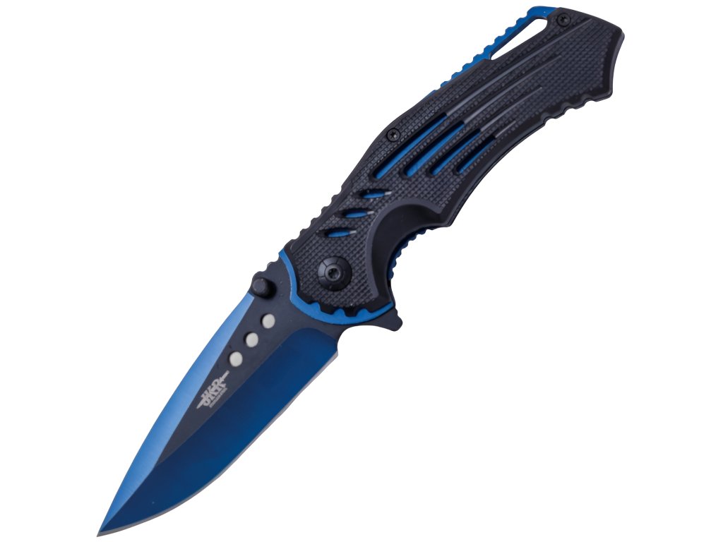 Importmarke JKR des spanischen Herstellers Joker aus der traditionellen Messerschmiedestadt Albacete. JKR Klappmesser, 9 cm, ABS, Blau-Schwarz ist ein hervorragender Begleiter für den täglichen Gebrauch, vor allem dank seines sehr geringen Gewichts und der ausreichend langen Klinge. Das Messer verfügt außerdem über eine innere Arretierung gegen unbeabsichtigtes Schließen, schwarze Griffschalen aus ABS sowie Ösen am Griffende zum Durchziehen einer Schnur. Die konstruktiv sehr einfache Klinge überzeugt durch ihre hochwertige Verarbeitung.