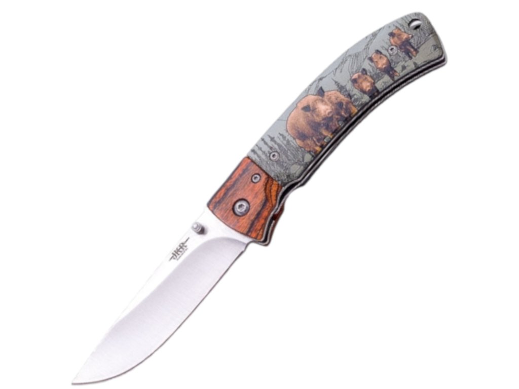 1x JKR Klappmesser mit 3D-Wildschweinmotiv, Aluminium
