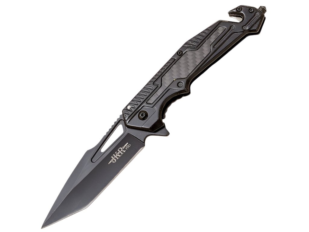 1x JKR PRO Klappmesser, 9,1 cm, Stahl und Carbon, Schwarz