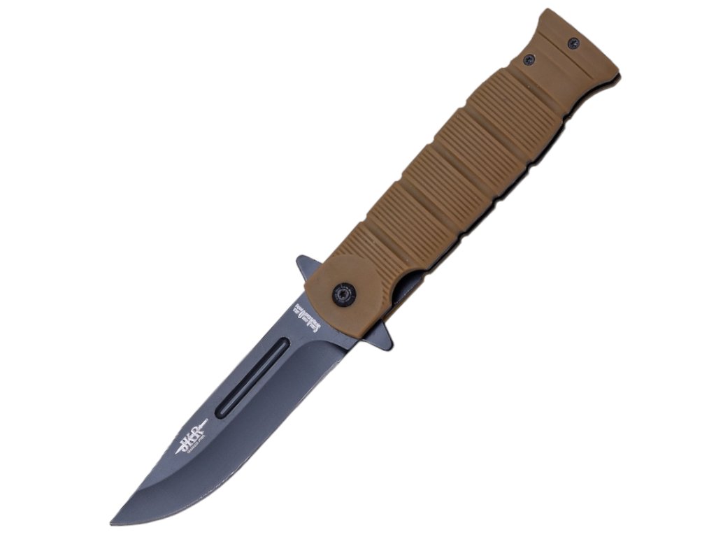 1x JKR Taktisches Klappmesser, Gummi, Sandfarbe