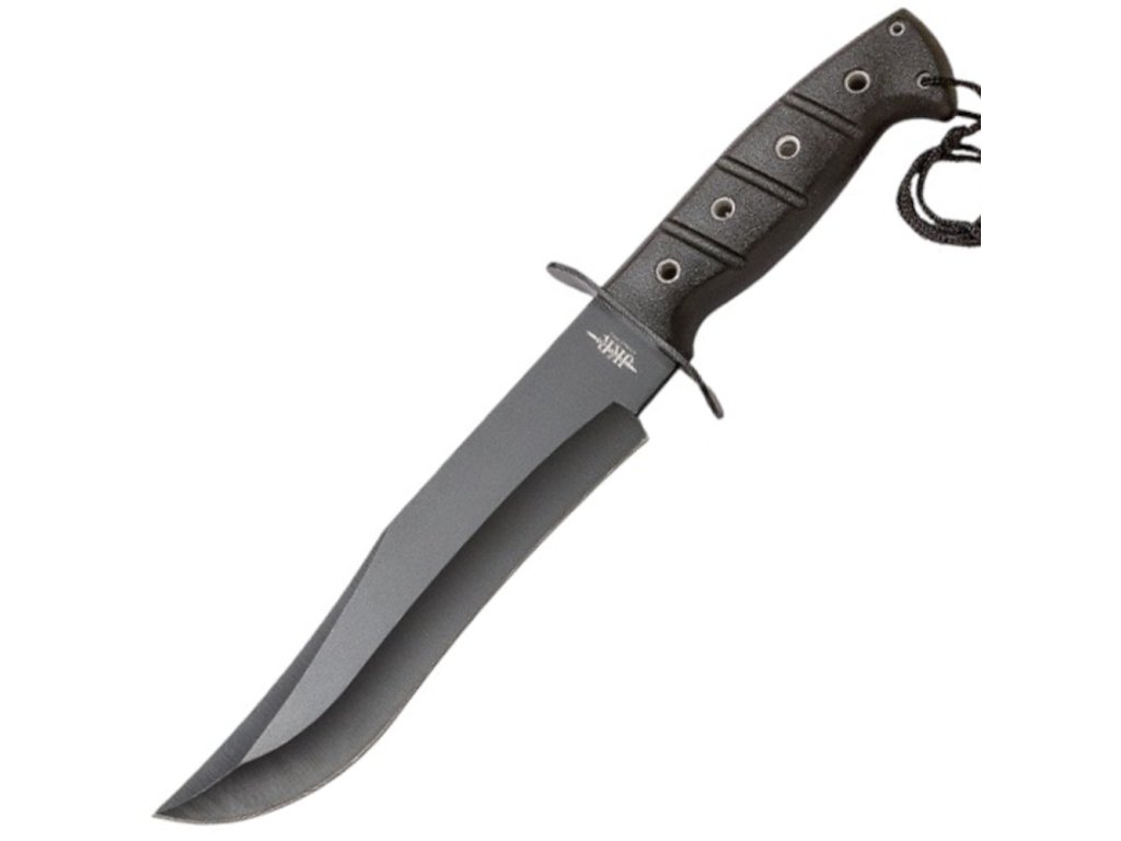 Die Importmarke JKR des spanischen Herstellers Joker aus der traditionellen Messerschmiedestadt Albacete. JKR Taktisches Messer mit Parierelement Guerrillero, 19,5 cm, ABS, Schwarz ist ein hervorragender Helfer bei anspruchsvollen Aufgaben. Eine lange Klinge, robuste Konstruktion und vor allem das geringe Gewicht machen es zu einem echten taktischen Messer. Der Griff mit Parierelement besteht aus gehärtetem ABS und verfügt über eine Öse für eine Schnur. Zum Messer gehört eine Nylon-Scheide, die am Gürtel befestigt werden kann.