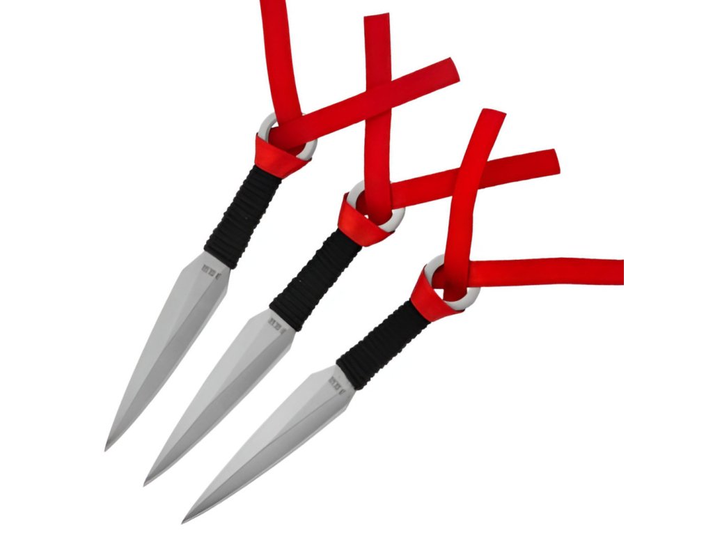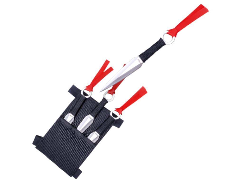 Importmarke JKR des spanischen Herstellers Joker aus der traditionellen Messerschmiedestadt Albacete. JKR Wurfmesserset, Nylon enthält insgesamt 3 Stück Wurfmesser. Die Messer gehören zur Kategorie der kleinen Wurfmesser und eignen sich daher für kürzere Distanzen. Zum Set gehört eine Nylon-Scheide, die z. B. am Bein befestigt werden kann.