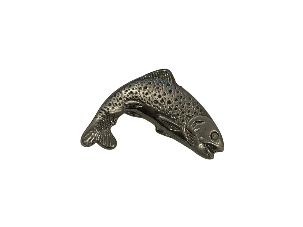 Ansteckabzeichen mit Pin zum Befestigen an der Kleidung vom spanischen Messerhersteller Joker mit Fischmotiv. Das Abzeichen hat die Maße 19,1 × 31,4 × 2,9 mm, zeichnet sich durch eine sehr detailreiche Ausführung aus und ist aus Metall gefertigt.