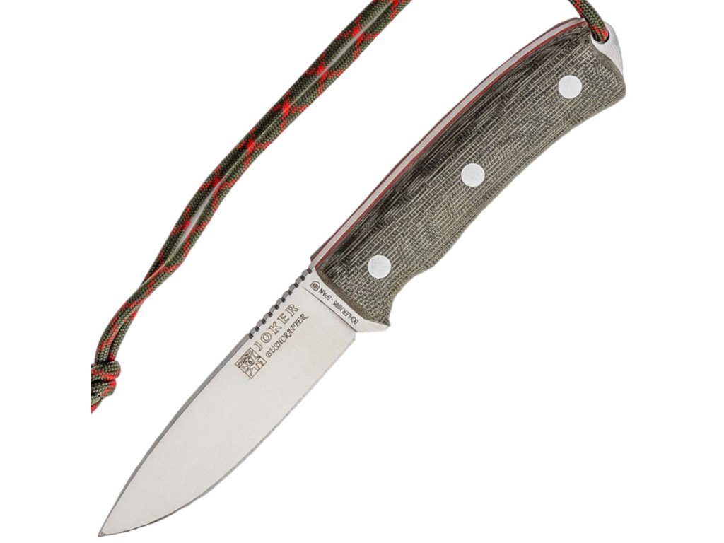 Der spanische Hersteller Joker stammt aus der traditionellen Messermetropole Albacete. Das Messer Bushcrafter gehört zur Serie der Bushcraftmesser und überzeugt durch eine sehr hohe Klingenhärte, wodurch es sich ideal für den Einsatz unter extremsten Bedingungen eignet. Bei der Entwicklung wurde auf eine hervorragende Handhabung geachtet – es liegt leicht in der Hand, hat jedoch eine ausreichend schwere Klinge für kraftvolles Hacken. Der ergonomische Griff aus grüner Micarta mit roten Akzenten ist ein äußerst widerstandsfähiges Detail, das die Qualität dieses exzellenten Messers unterstreicht.