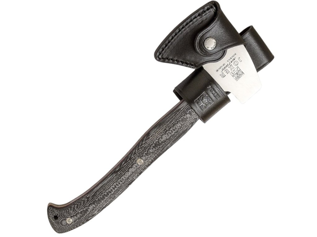 Der spanische Hersteller Joker ist ein traditionsreicher Messerproduzent aus der bekannten Messerstadt Albacete. Joker Nature – Full Tang Axt, Micarta, Schwarz ist ein zuverlässiger Helfer bei anspruchsvollen Arbeiten. Die äußerst robuste Konstruktion in Kombination mit einer außergewöhnlich – wirklich außergewöhnlich – breiten Schneide sorgt für maximale Sicherheit auch beim Fällen kleinerer Bäume. Zur Axt gehört eine zweiteilige Lederscheide, die am Gürtel befestigt werden kann.