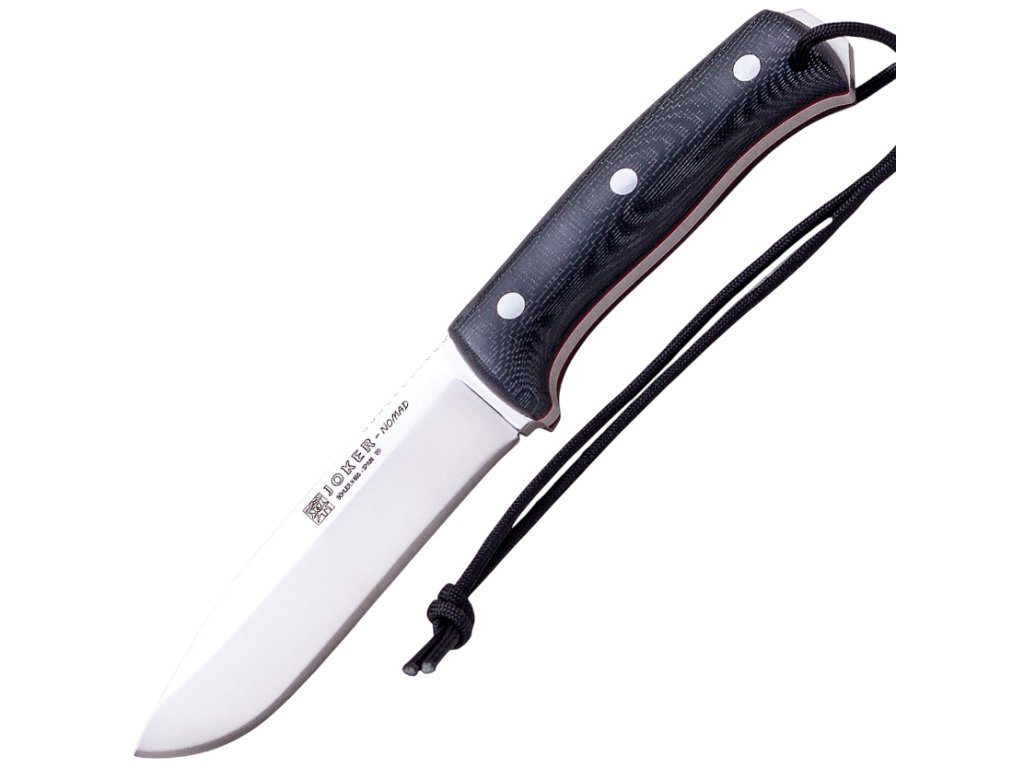 Der spanische Hersteller Joker stammt aus der traditionellen Messermetropole Albacete. Das Messer Nomad gehört zur meistverkauften Serie von Bushcraftmessern und überzeugt durch seine extrem hohe Klingenhärte, die es ideal für den Einsatz unter härtesten Bedingungen macht. Bei der Entwicklung wurde besonderer Wert auf die Kombination von hervorragender Handhabung, Funktionalität und extremer Robustheit gelegt. Das Messer ist so konzipiert, dass es auch zum Hacken, Zerschlagen und – dank des beiliegenden Feuerstahls – zum Entzünden eines Feuers verwendet werden kann.