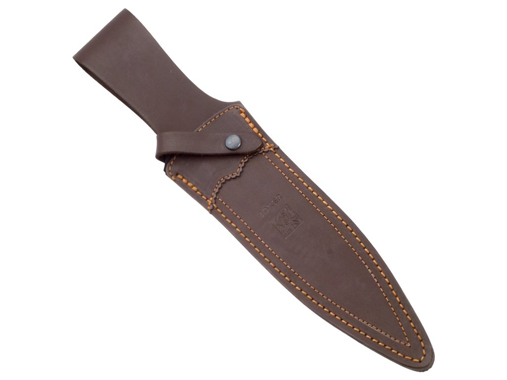 Der spanische Hersteller Joker stammt aus der traditionellen Messermetropole Albacete. Der Jagddolch Joker Rehalero besticht durch eine sehr lange Klinge mit Doppelschneide, was ihn zu einem vielseitigen Begleiter für Jagd und Natur macht. Aufgrund der luxuriösen Verarbeitung eignet sich der Dolch auch ideal als Sammlerstück. Die majestätische Klinge fällt sofort durch ihre satinierte Oberfläche, eine Höhe von 46,5 mm und eine Stärke von 4,6 mm auf. Der ergonomische Griff mit Parierelement aus rotem Holz ist ein luxuriöses Detail, das die Qualität dieses exzellenten Messers unterstreicht. Zum Messer gehört eine maßgeschneiderte Lederscheide.