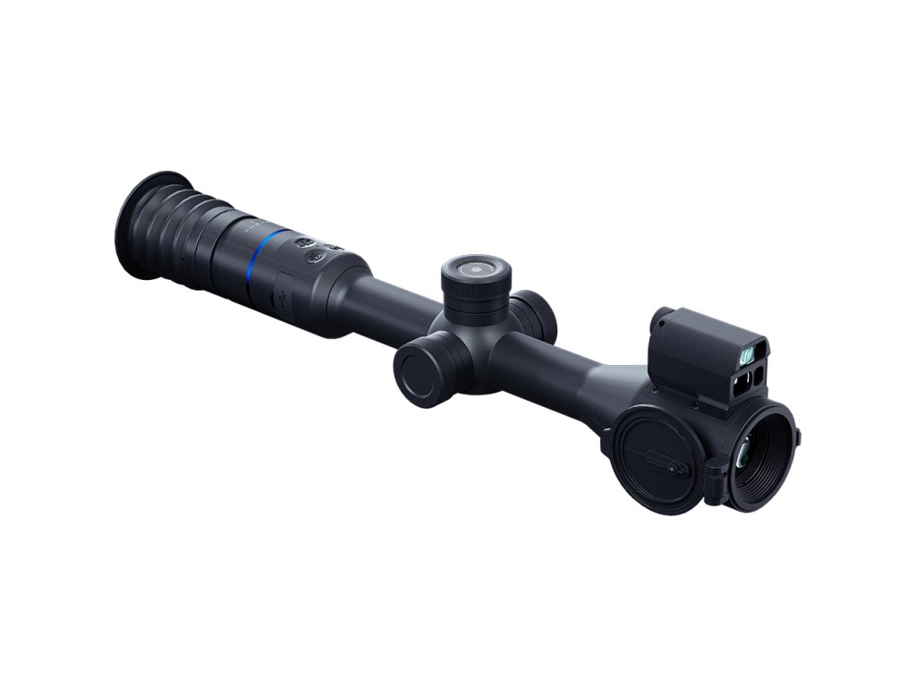PARD Night Stalker 4K eX – ein komplettes Facelift, das das gesamte Gehäuse des Zielfernrohrs neu gestaltet hat. Der Fokussierring wurde in die Mitte verlegt, das Modul mit Laser-Infrarot-Aufheller und Laser-Entfernungsmesser kann nun ausgetauscht oder vollständig entfernt werden. Außerdem erhielt das Gerät ein größeres Display mit deutlich höherer Auflösung. Trotz des gleichen 4K-Sensors ist das Bild bei der Beobachtung deutlich klarer, und die größere Bildschirmdiagonale sorgt für ein erheblich erweitertes Sehfeld – beim neuen Modell beträgt es auf 100 m 7,1 m statt der bisherigen 4 m.