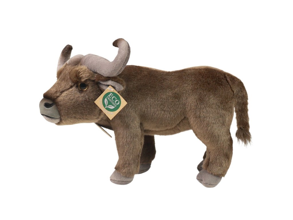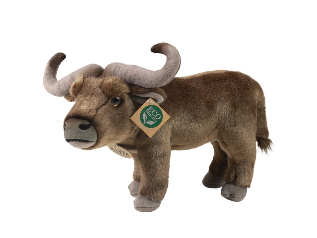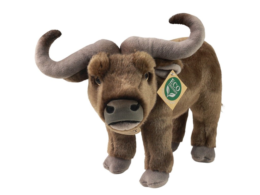 Plüsch-Büffel 29 cm aus der ECO-Friendly-Kollektion des Herstellers RAPPA. Das Plüschtier überzeugt durch eine detailreiche Verarbeitung und ein besonders angenehmes Material. Bei der Herstellung wurde zudem auf die Verwendung möglichst vieler recycelter Materialien geachtet.