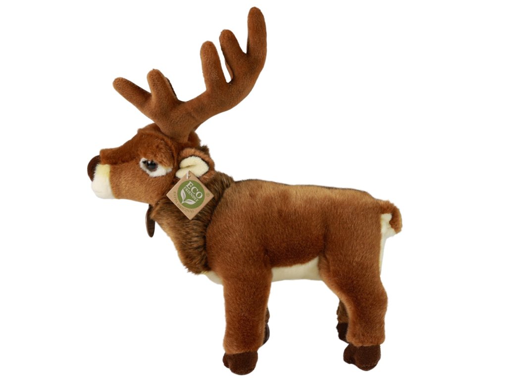 Plüsch-Hirsch 34 cm aus der ECO-Friendly-Kollektion des Herstellers RAPPA. Das Plüschtier überzeugt durch eine detailreiche Verarbeitung und ein besonders angenehmes Material. Bei der Herstellung wurde zudem auf die Verwendung möglichst vieler recycelter Materialien geachtet.