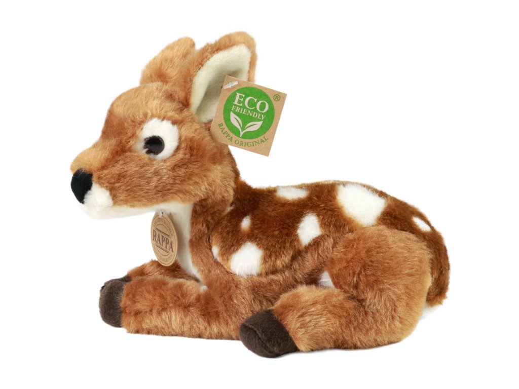 Plüsch-Rehkitz 22 cm aus der ECO-Friendly-Kollektion des Herstellers RAPPA. Das Plüschtier überzeugt durch detailreiche Verarbeitung und ein besonders angenehmes Material. Bei der Herstellung wurde zudem auf die Verwendung möglichst vieler recycelter Materialien geachtet.