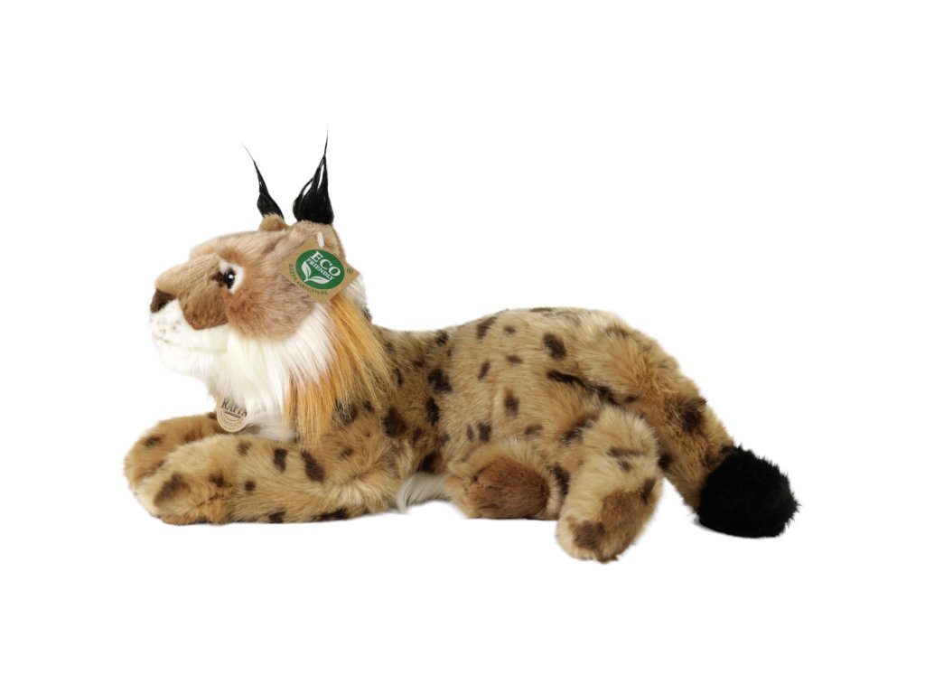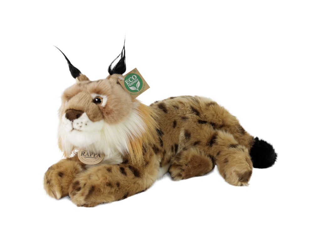 Plüsch-Luchs liegend 28 cm aus der ECO-Friendly-Kollektion des Herstellers RAPPA. Das Plüschtier überzeugt durch eine detailreiche Verarbeitung und ein besonders angenehmes Material. Bei der Herstellung wurde zudem auf die Verwendung möglichst vieler recycelter Materialien geachtet.